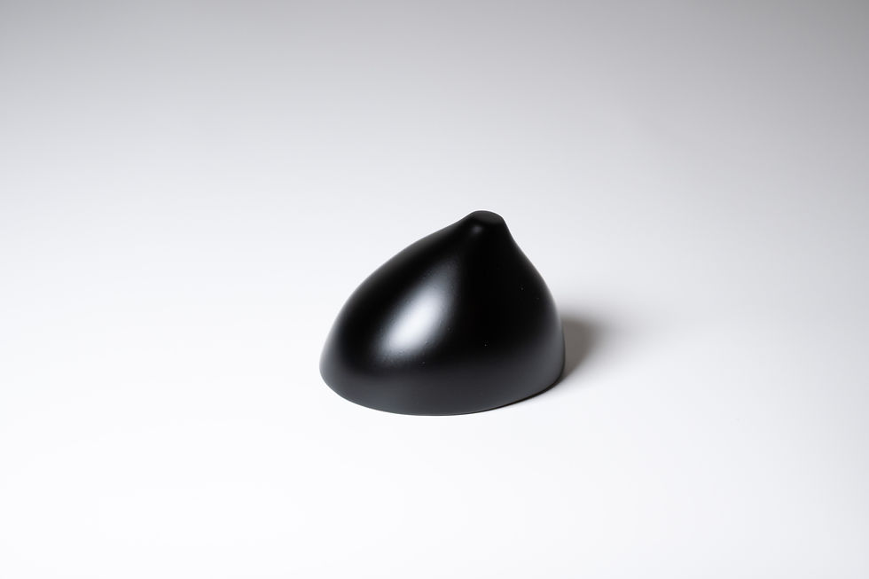 “Throughout my artistic practice, I have been captivated by the language of curved lacquer surfaces. The shape of the breast represents a pure and symbolic form of curvature, embodying embracing lines and an implied direction toward the origin of life. Sculpting this form in lacquer is not only an homage to feminine beauty but also a means of expressing warmth, nurturing, and the continuous flow of life.
